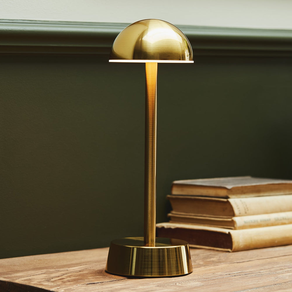 Messing Dome Tafellamp – Oplaadbaar & Sfeervol